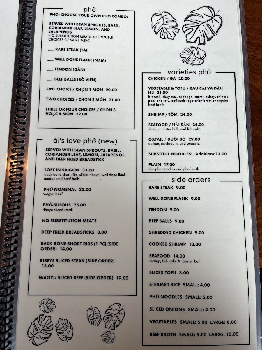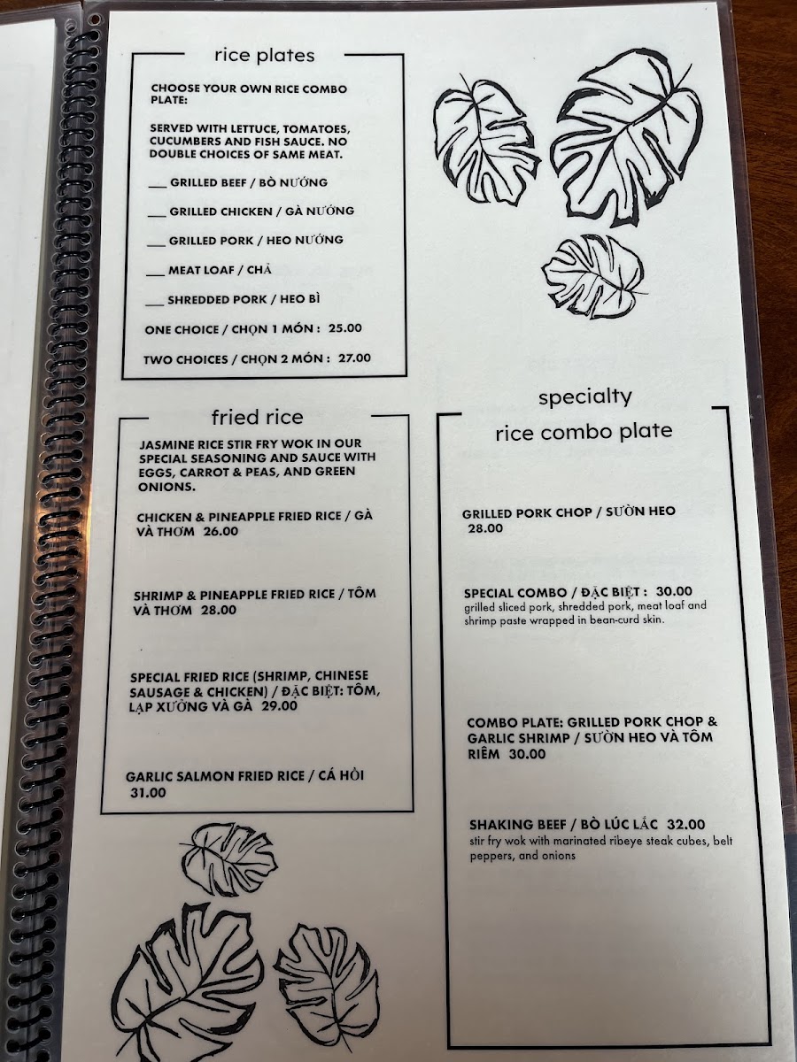 Beyond pho, the appetizers such as shrimp summer rolls and veggie rolls showcase fresh, crunchy textures paired with rich peanut sauce, providing a light yet flavorful start. The menu also includes enticing options like pineapple fried rice with chicken or shrimp, balancing sweet and savory notes that elevate the meal.