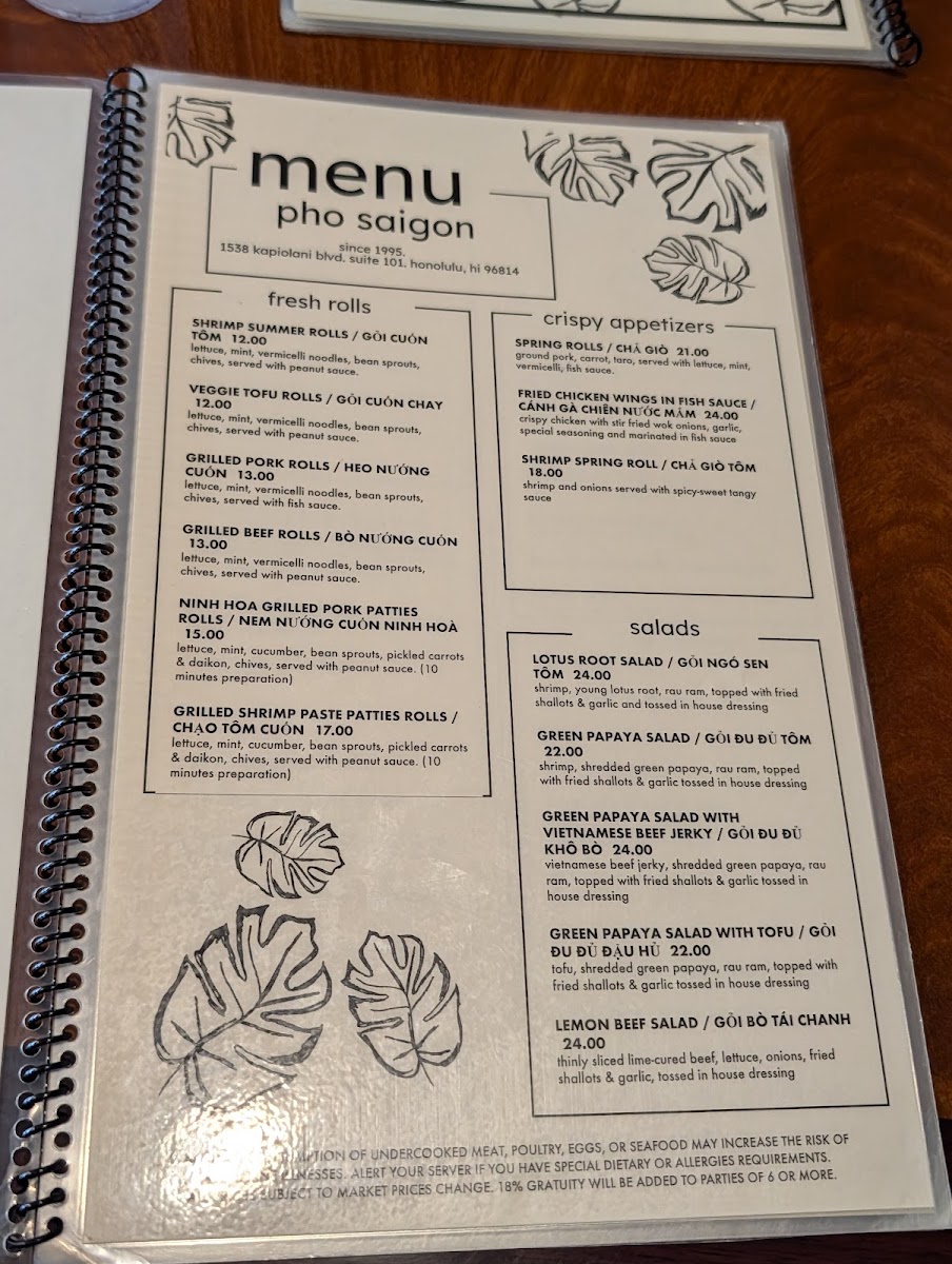 Pho Saigon Restaurant, nestled near Ala Moana in Honolulu, offers an authentic Vietnamese dining experience centered on its star dish—pho. The menu highlights classic Vietnamese Beef Noodle Soups where diners craft their perfect bowl by choosing proteins like rare beef, tendon, or beef balls. Each pho comes garnished with fresh bean sprouts, basil, lemon, and jalapeños, delivering a fragrant and vibrant flavor profile that comforts and satisfies.